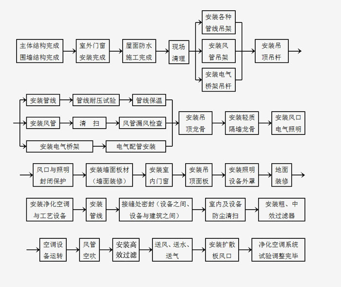 3、凈化工程設(shè)計(jì)應(yīng)為施工安裝、維護(hù)管理、測試和安全運(yùn)行創(chuàng)造必要的條件。