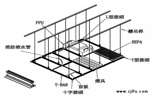 FFU風(fēng)機吊頂龍骨系統(tǒng)是指用鋁合金做成的,用于潔凈室天花吊頂?shù)闹鞑牧?,它通過螺桿與鋁合金相接,用來固定FFU。適用于局部層流系統(tǒng)、FFU系統(tǒng)和不同潔凈級別的空氣凈化系統(tǒng)。