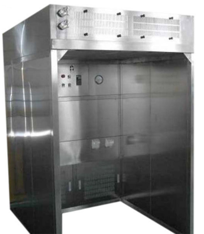 在離心風(fēng)機提供的壓力下,通過高效過濾器,使之達(dá)到潔凈要求。潔凈氣流被送至送風(fēng)箱體內(nèi),90%通過均流送風(fēng)網(wǎng)板,形成均勻的垂直送風(fēng)氣流,10%則通過風(fēng)量調(diào)節(jié)板,排出設(shè)備。所有氣流均經(jīng)過高效過濾器處理,所以送風(fēng),排風(fēng)均不帶殘余粉塵,避免了二次污染。由于在工作區(qū)域形成穩(wěn)定的單向流,在此區(qū)域中散發(fā)的粉塵,會在單向氣流的影響下,隨著氣流而被初、初效過濾器所捕集。設(shè)備帶有10%的排風(fēng),從而形成相對與外部環(huán)境的負(fù)壓,從一定程度上保證了此區(qū)域內(nèi)的粉塵不會擴散至室外,起到保護(hù)外部環(huán)境的作用。