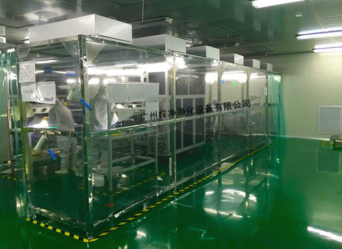 百級潔凈棚可選配件(FFU),百級潔凈棚FFU是安裝在它的頂部上,而它的頂部又由盲板鋪蓋、密縫嚴(yán)密、四周用防靜電簾/防靜電有機(jī)玻璃圍成,四周底部利用正壓自然排風(fēng)等形式,使?jié)崈襞飪?nèi)潔凈度可達(dá)到10到1000級左右。百級潔凈棚百級潔凈棚通常都是建在潔凈室內(nèi),可配上風(fēng)淋室傳遞窗以及空調(diào)送風(fēng)系統(tǒng)效果比較好,成本與潔凈室比較會大大降低,當(dāng)然這與潔凈棚所需材料、大小以及潔凈級別有一定的關(guān)系。會將潔凈棚建在無塵室之內(nèi),但有的客戶不想單獨建無塵車間,在潔凈棚考慮空調(diào)系統(tǒng)及風(fēng)淋室、傳遞窗等凈化設(shè)備的情況下,潔凈棚的成本約是無塵車間造價的40%~60%,這取決于客戶對潔凈棚材料的選擇,以及潔凈棚的大小。需要潔凈的區(qū)域越大,潔凈棚與無塵車間的成本相比差別會越小。潔凈棚周圍一般都是采用防靜電網(wǎng)格簾或是有機(jī)玻璃,送風(fēng)部均采用FFU潔凈送風(fēng)單元。潔凈棚框架一般使用工業(yè)鋁型材,頂部可用不銹鋼鋼板、烤漆冷塑鋼板、防靜電網(wǎng)格簾及壓克力有機(jī)玻璃等材料。潔凈棚周圍一般都是采用防靜電網(wǎng)格簾或是有機(jī)玻璃,送風(fēng)部均采用FFU潔凈送風(fēng)單元。無塵車間一般采用泡沫彩鋼或是巖棉板吊頂有立墻,有獨立的空調(diào)送風(fēng)系統(tǒng),空氣經(jīng)過初中高效三級過濾,人員及物料配有風(fēng)淋室及傳遞窗潔凈過濾。