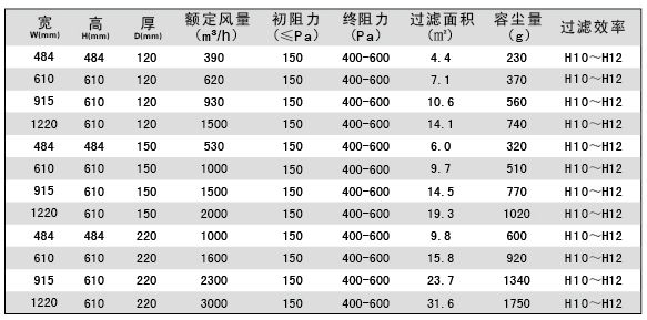 用戶選購指南-有隔板亞高效過濾器參數(shù)