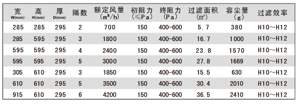 W型V型組合式亞高效過濾器產(chǎn)品性能: