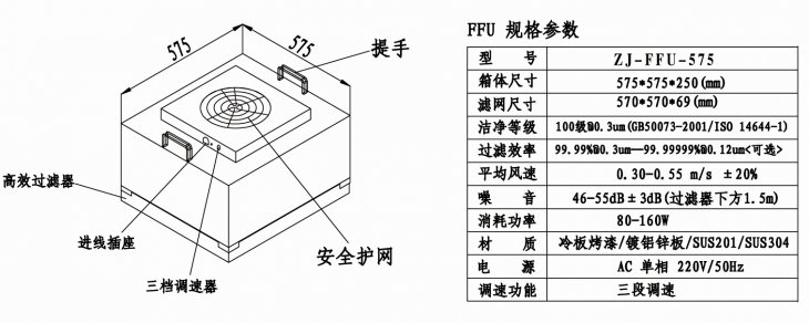 本產(chǎn)品主要介紹我司生產(chǎn)的575*575*320規(guī)格的FFU,型號:ZJFFU575,圖文結合更清晰,讓您更好更多的了解我司生產(chǎn)的ZJFFU575產(chǎn)品。