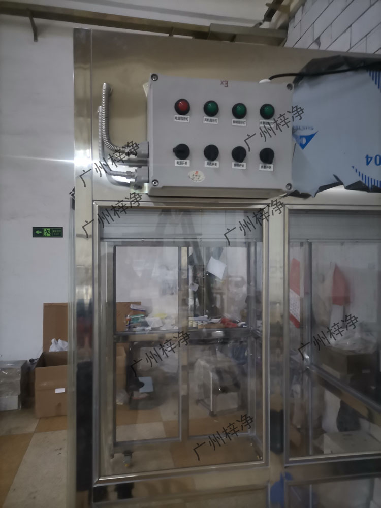 5、工作區(qū)兩側為不銹鋼擋板,前后為條形防靜電防塵垂簾,達到理想防塵效果。