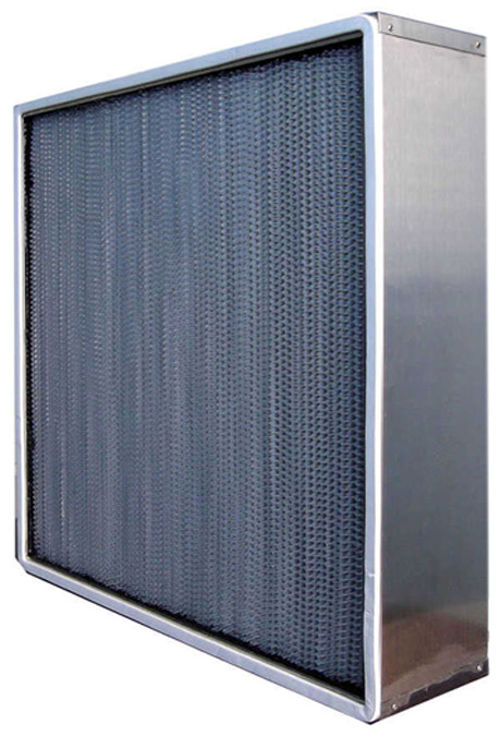 耐高濕有隔板高效過濾器濾料為:玻璃纖維材料。此結(jié)構(gòu)形式的過濾器,濾料做成多褶式,形成通風(fēng)氣流通道,增加了濾料面積和送風(fēng)量,降低了送風(fēng)的阻力;具有結(jié)構(gòu)緊湊、阻力低,容塵量大,風(fēng)速均勻性好通用性強(qiáng)、安裝方便等優(yōu)點(diǎn)。