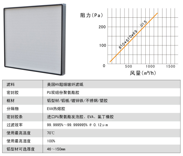 U15無(wú)隔板超高效過濾器技術(shù)參數(shù)
