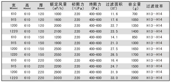 6、過濾效率:H13:99.97-99.99%@0.3μm H14:99.995-99.999%@0.3μm 。